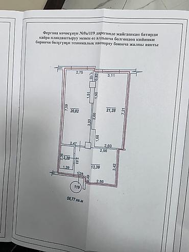 56 500 USD2 комнаты, 58 м², 105 серия, 2 этаж, Косметический ремонт