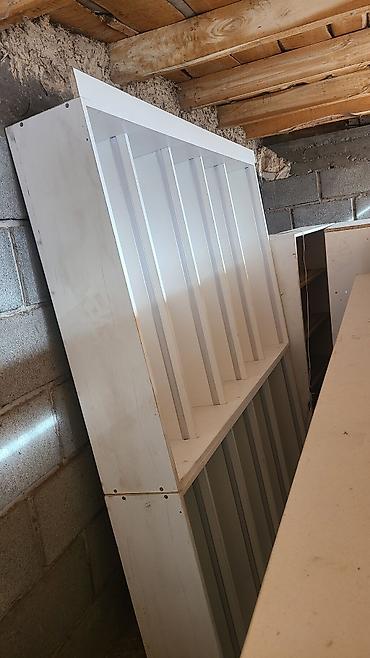 - Материал: ЛДСП/МДФ белого цвета, лицевые кромки и вертикальные усиливающие планки из алюминиевого профиля.