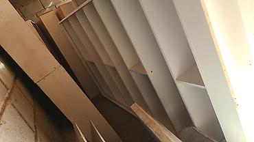 - Высокие секционные стеллажи с открытыми полками.