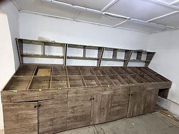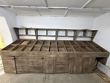 - Большая прилавочная секция с наклонной рабочей поверхностью, разделённой на множество отдельных ячеек для выкладки: орехов, сухофруктов, конфет, специй, семян, мелких хозтоваров и т.п.