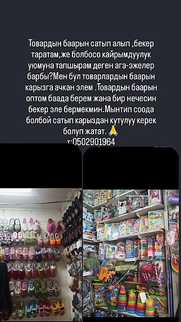 Товардын баарын сатып алып ,бекер таратам,же болбосо кайрымдуулук уюмуна тапшырам деген ага-эжелер барбы?Мен бул товарлардын баарын карызга ачкан элем .Товардын баарын оптом баада берем жана бир нечесин бекер эле бермекмин.Мынтип соода болбой сатып карыздан кутулуу керек болуп жатат.🙏Общ 50-80миң чыкса керек.
