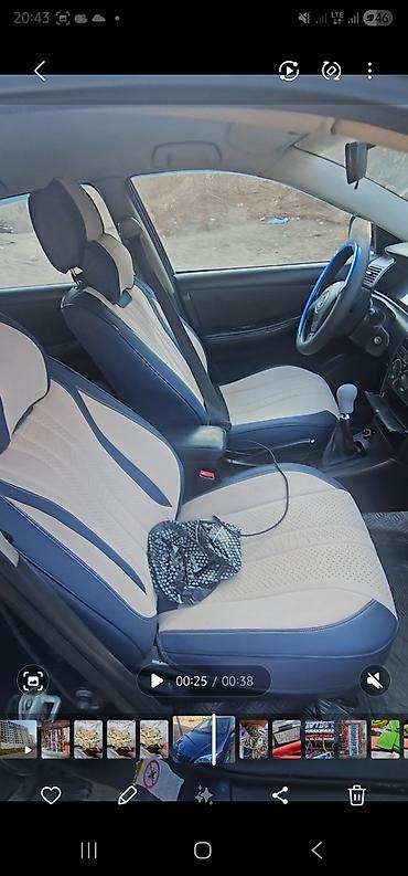- Тканево-эко-кожаные чехлы на сиденьях (сине‑бежевые)