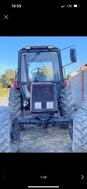 - Полный привод (виден передний ведущий мост), большие задние колеса с выраженным аграрным протектором.