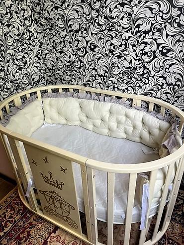 - В комплекте на фото: матрас овальной формы и мягкие бортики-подушки по периметру.