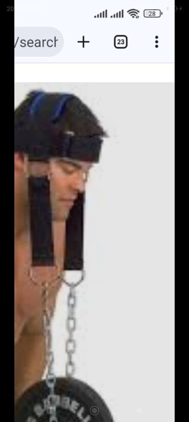 - Пояс-«шлем» для тренировки мышц шеи: надевается на голову, к кольцам крепится цепь с грузом.