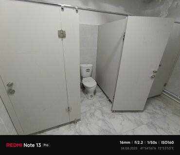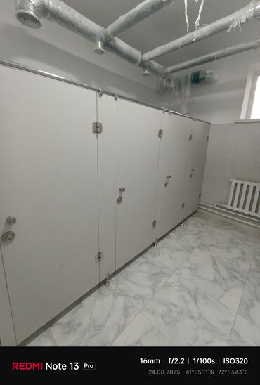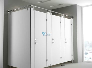 Больше 6 лет опытаПредлагается система туалетных перегородок, состоящая из отдельных кабинок. Каждая кабинка оснащена распашной дверью с ручкой и замком, обеспечивающим приватность. Конструкция включает верхнюю горизонтальную металлическую штангу для устойчивости и ножки-опоры для каждой перегородки. Эти перегородки подходят для установки в общественных санузлах, обеспечивая функциональное и гигиеничное разделение пространства.