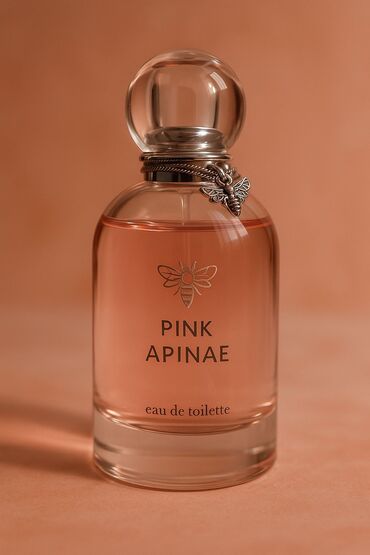 - Дизайн: стеклянный флакон с круглой пробкой и подвеской-пчелкой; фирменный символ пчелы на упаковке в розово-белой гамме.
