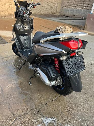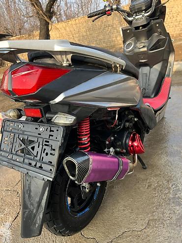 Скутер/максискутер черного цвета с агрессивным спортивным дизайном. Характеристики и особенности: - Кузов с острыми линиями, высокий ветровик, черный глянец с красными акцентами. - Светотехника: д...60 000 KGS