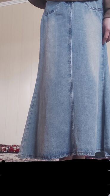 Джинсовая юбка миди А-силуэта - Материал: плотный деним с эффектом варки (градиент от более тёмного к светлому низу) - Посадка: средняя/высокая - размер : S - Китай - носилась пару раз, как нова...