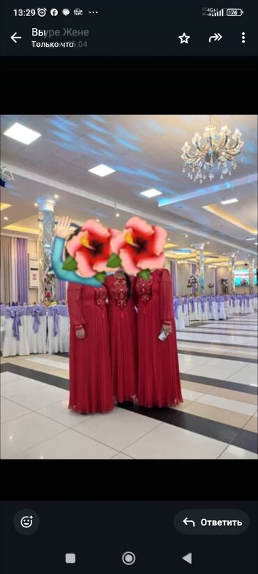Вечернее платье в пол, бордового цвета. - Силуэт: облегающий, подчеркивает фигуру. - Длина: макси с мягким шлейфом по низу. - Рукава: длинные. - Вырез: закрытый, круглый. - Детали: драпировка и уз...