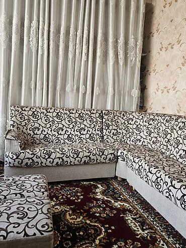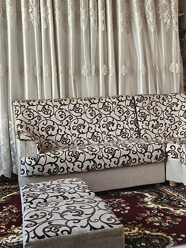 - Пуф: прямоугольный, в том же цвете и узоре, можно использовать как подставку для ног, дополнительное место или приставлять к дивану.