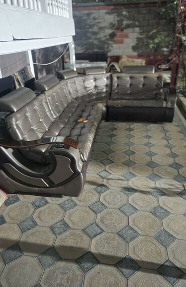 Угловой диван большой вместительности - Конфигурация: Г‑образный (правый угол), длинная сторона — примерно 3,2–3,5 м, короткая — около 1,9–2,1 м. - Посадочных мест: 5–6. - Каркас: массив/ДСП, опор...