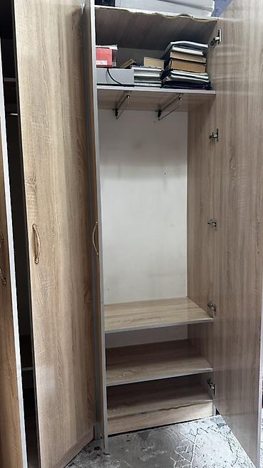 Шкаф для хранения одежды и предметов быта. Имеет несколько секций для удобной организации пространства. Двери оснащены ручками для легкого открывания. Идеально подходит для спальни, гостиной или пр...