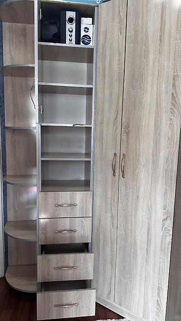 Эшиктин басы 4000 сом. Шкаф-гардероб басы 5000сом с зеркальной дверцей - Тип: распашной двухдверный шкаф - Материал: ЛДСП с текстурой светлого дуба - Фасады: одна гладкая дверь + дверь с большим з...