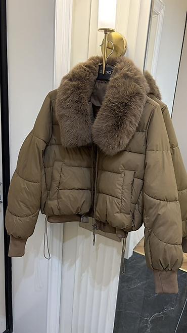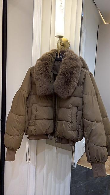Укороченный пуховик с объемным меховым воротником. - Цвет: теплый