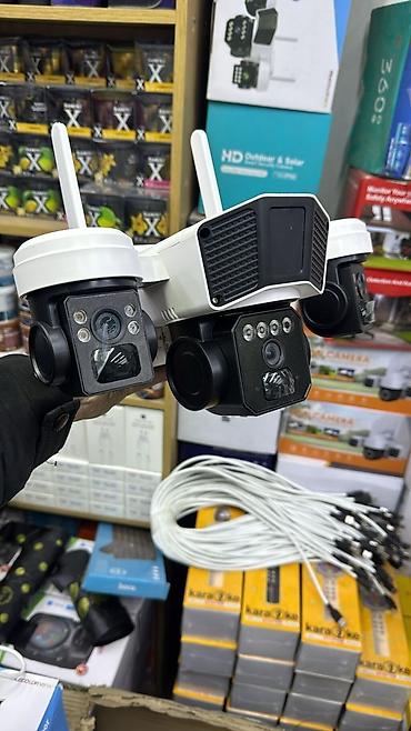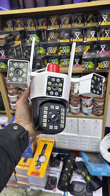 - Поворотные многофункциональные уличные камеры с тремя модулями и мощной светодиодной подсветкой, двумя Wi‑Fi антеннами и встроенной сиреной/прожекторами.