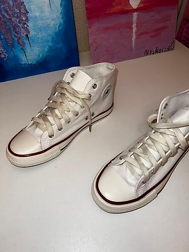 Состав : хлопок .Размер:40(250мм) .Новые белые кеды на шнуровке с высоким голенищем. Модель "унисекс" подходит для повседневного использования. Кеды дополнены классической резиновой подошвой и черными полосками по периметру.Продаю, п ч не подошли по размеру
