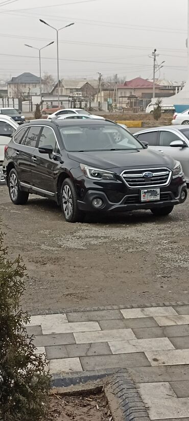 Subaru Outback, черный универсал-кроссовер (рестайлинг). Полный привод Symmetrical AWD. Просторный салон и высокий клиренс.