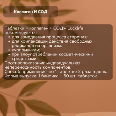 Таблетки «Коллаген + СОД» Lucklife рекомендуется: