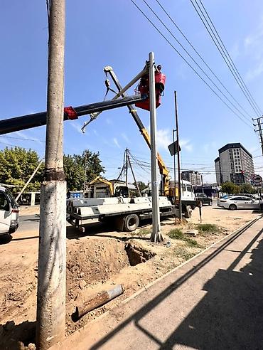 - Работы: монтаж и демонтаж опор и консольных ферм, установка дорожных знаков и светофорных консолей, высотный электромонтаж, обслуживание уличного освещения, работы на фасадах и трудно-доступных участках.