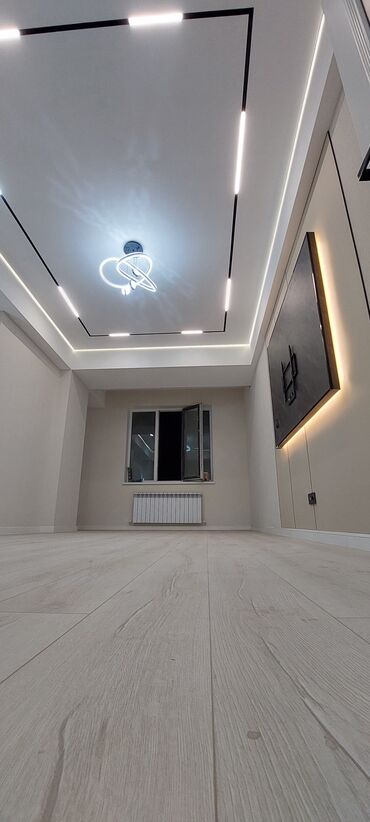 - Потолки: белые, с аккуратной лепниной по периметру и системой комбинированного освещения (споты, люстры).