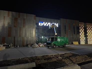 - Работы на высоте: монтаж и демонтаж вывесок и фасадных конструкций, установка/обслуживание наружной рекламы, подсветки, видеокамер, кондиционеров, стеклопакетов.