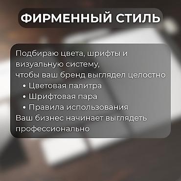 Графический дизайн для вашего бизнеса Услуги: - Разработка фирменного стиля и айдентики (логотип, цветовая палитра, шрифты, графические элементы) - Дизайн полиграфии: буклеты, брошюры, каталоги, ф...