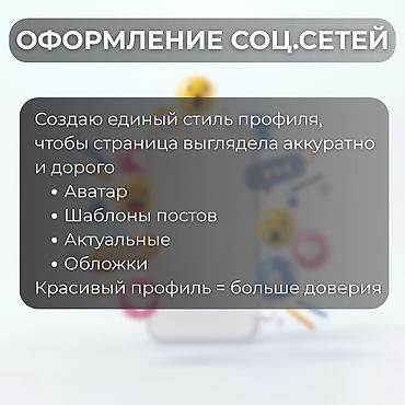 - Оформление соцсетей — единый стиль профиля: аватар, шаблоны постов, обложки, хайлайты. Аккуратный визуал повышает доверие.
