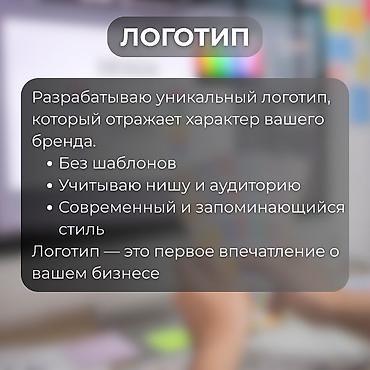 Услуги графического дизайна для брендов и бизнеса Что делаем: - Разработка логотипов и фирменного стиля (гайд по цветам, шрифты, варианты использования) - Дизайн визиток, буклетов, флаеров, постер...