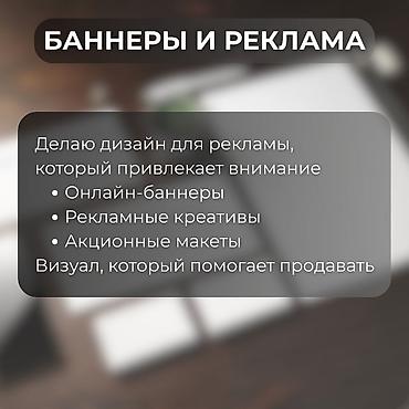 Услуги графического дизайна: - Разработка логотипов - 3D‑дизайн - Дизайн карточек товаров/услуг - Баннеры - Бейджики - Иллюстрации/изображения - Таблички и вывески Подбор стиля под ваш бренд, акк...