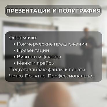 Услуги графического дизайна Профессиональное оформление для бизнеса и личных проектов: - Логотипы и фирменный стиль (цвета, шрифты, гайдлайны) - Презентации и коммерческие предложения - Резюме, до...
