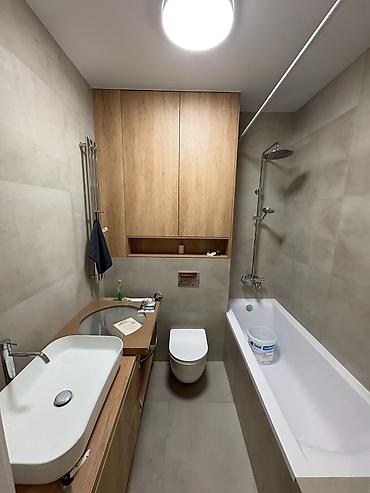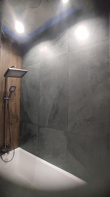 - Душевые зоны: монтаж крупноформатной плитки и керамогранита, скрытая арматура, установка верхнего душа и гигиенических комплектов, герметичная гидроизоляция.