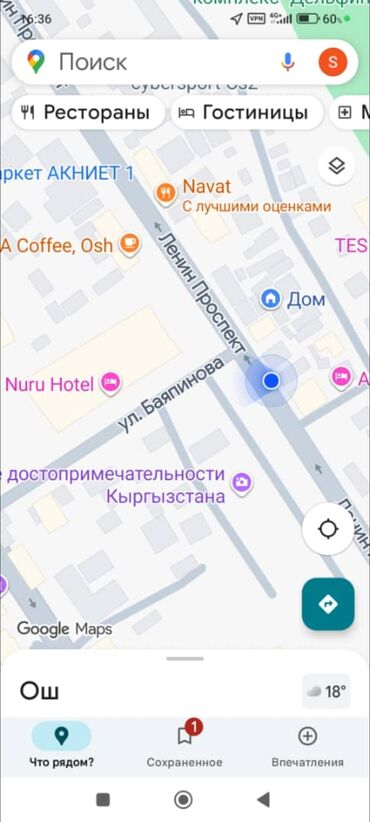 ориентир : Гостиница Ош Нуру- Чайхана Навват