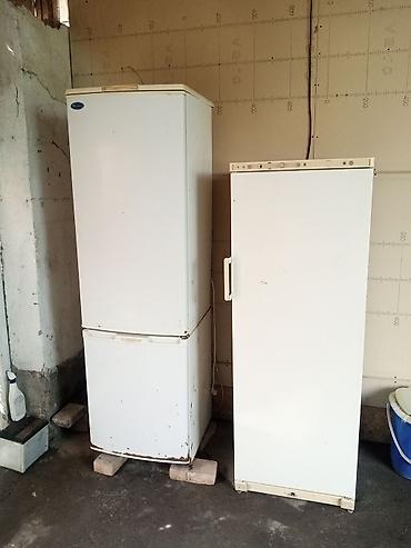 - Два вертикальных холодильных шкафа белого цвета: