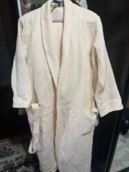 Вафельный халат кимоно, белый. - Материал: мягкое и прочное вафельное полотно, хорошо впитывает влагу и быстро сохнет. - Посадка: свободный крой с запахом. - Детали: широкий воротник-шаль, пояс из...