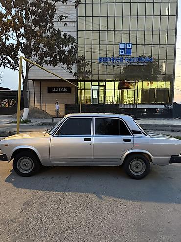 ВАЗ 2107, седан, светло‑серый цвет. Основные характеристики: - Кузов: классический 4‑дверный седан. - Привод: задний. - Фары прямоугольные, хромированная решётка радиатора. - Бамперы с хром‑наклад...