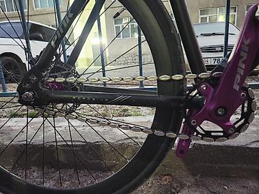 - Привод: одиночная передача (single speed/fixed), узкая цепь, алюминиевые шатуны PINK с анодированными фиолетовыми звездами и крепежом.