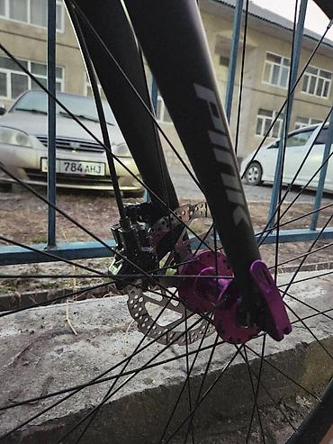 - Колеса: глубокие обода, спицы под прямую тянущую сборку, анодированные фиолетовые втулки на эксцентриках.