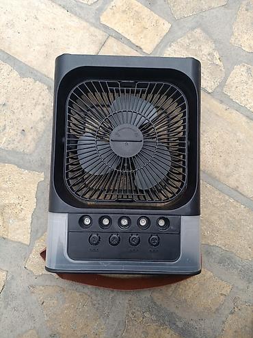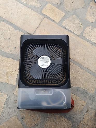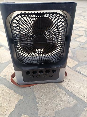- Компактный настольный/переносной вентилятор квадратной формы с удобной ручкой-ремнем.