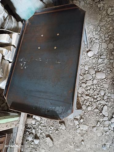 - Стальная рабочая платформа с отбортовкой по периметру для удержания форм и смеси; площадка прямоугольная, с фасками по углам.