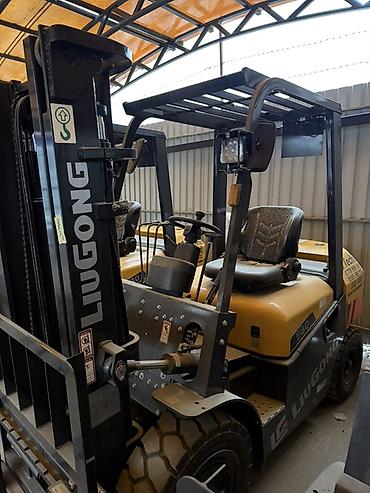 На фото — несколько единиц Liugong с одинаковой компоновкой. Возможна установка дополнительного навесного оборудования (позиционер вил, захваты и т.п.) при наличии соответствующих гидровыводов на каретке.