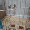 Волнистые попугайчики в вольере. - Пара молодых волнистых попугаев