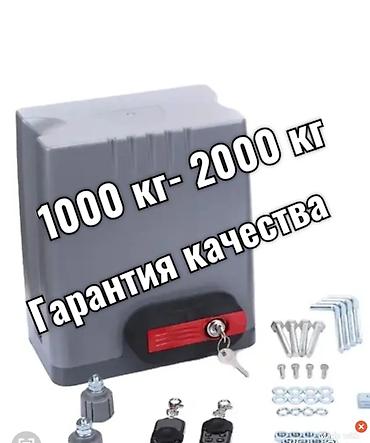 Автоматический привод для откатных ворот, подходящий для домашнего использования. Устройство имеет прочный корпус серого и черного цвета. Привод оснащен шестерней для передачи движения и может быть заблокирован ключом для дополнительной безопасности. В комплект входят два пульта дистанционного управления для удобства использования, а также дополнительные аксессуары для установки, включая крепежную пластину, монтажные болты, кронштейны, ключи и датчики.