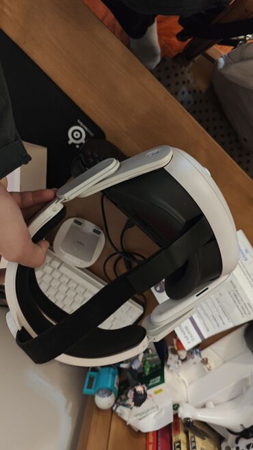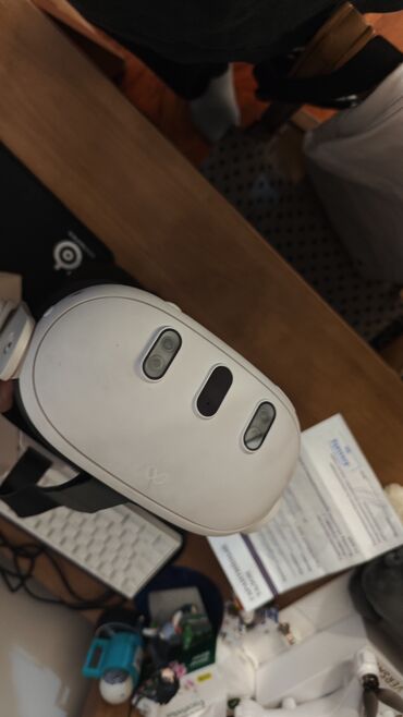- В комплекте: гарнитура Meta Quest 3, два контроллера Touch, кабель/аксессуары из коробки (по стандартному набору производителя).