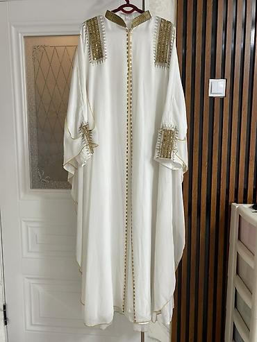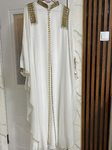 Белая восточная абайя/кафтан с декоративной отделкой. новая -