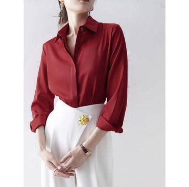 Женские рубашки/блузы в упаковках. - Материал: плотная мягкая ткань (визуально — костюмная/смесовая, держит форму, не просвечивает). - Крой: классическая рубашка на пуговицах, отложной воротник, м...
