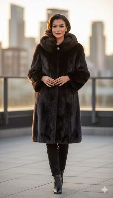 Шуба из натурального меха норки, цвет глубокий черный. - Крой: полуприлегающий А-силуэт, длина до mid-thigh/колена (зависит от роста). - Капюшон: объемный, с утяжками на кулиске. - Рукава: длинные,...