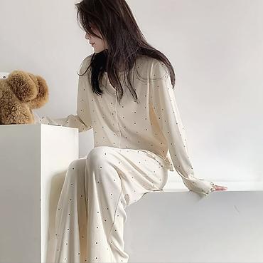 Женская домашняя пижама, 2 предмета - Цвет: молочный/айвори с мелким