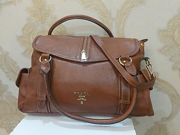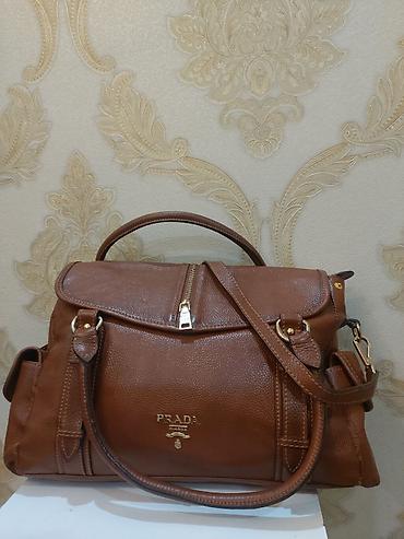 Женская кожаная сумка Prada, цвет коньячный (коричневый).