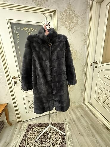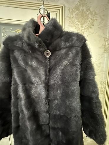 Норковая шуба глубокого графитового оттенка. - Длина: миди, ниже